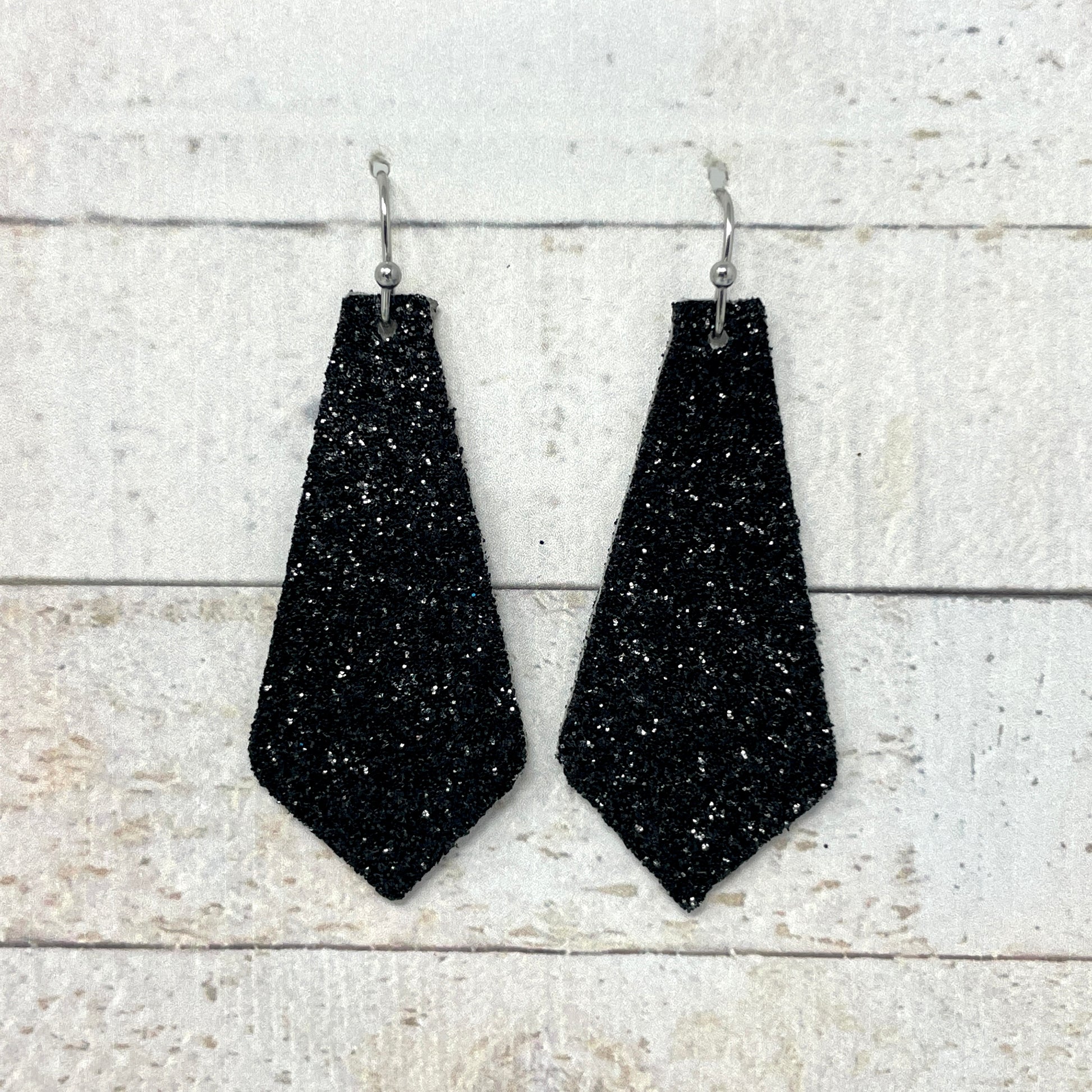 Black Glitter Fabric Tie Earrings