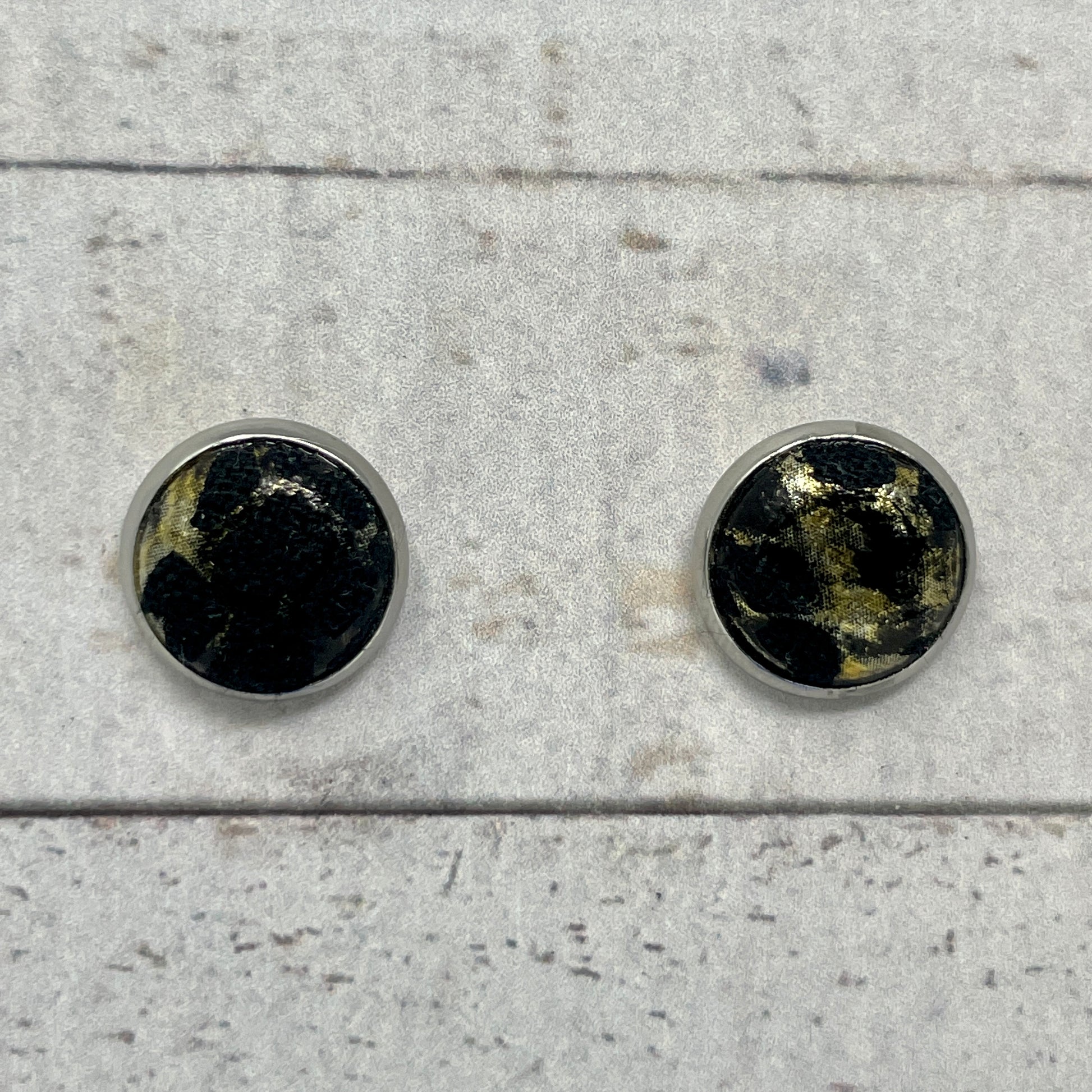 Black & Gold Foil Fabric Stud Earrings