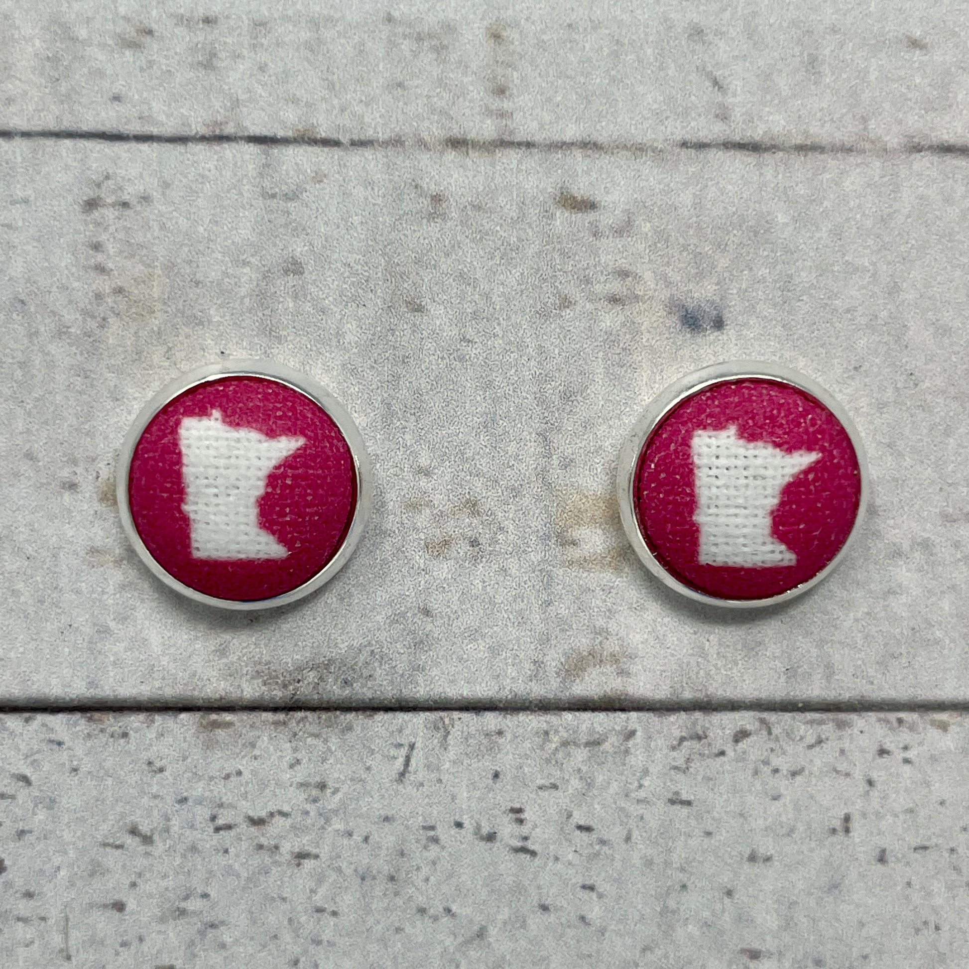 Hot Pink Minnesota Fabric Stud Earrings