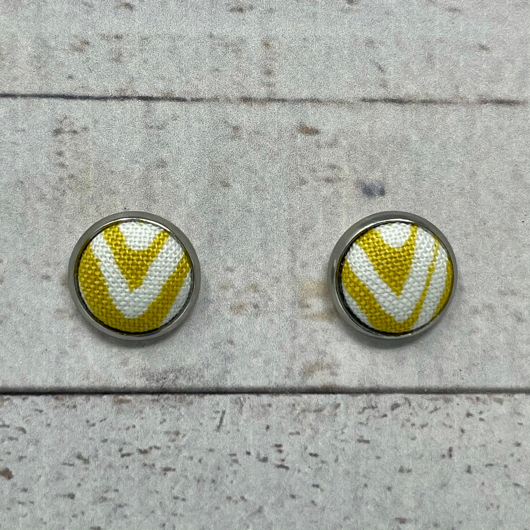 Mustard Zebra Fabric Stud Earrings