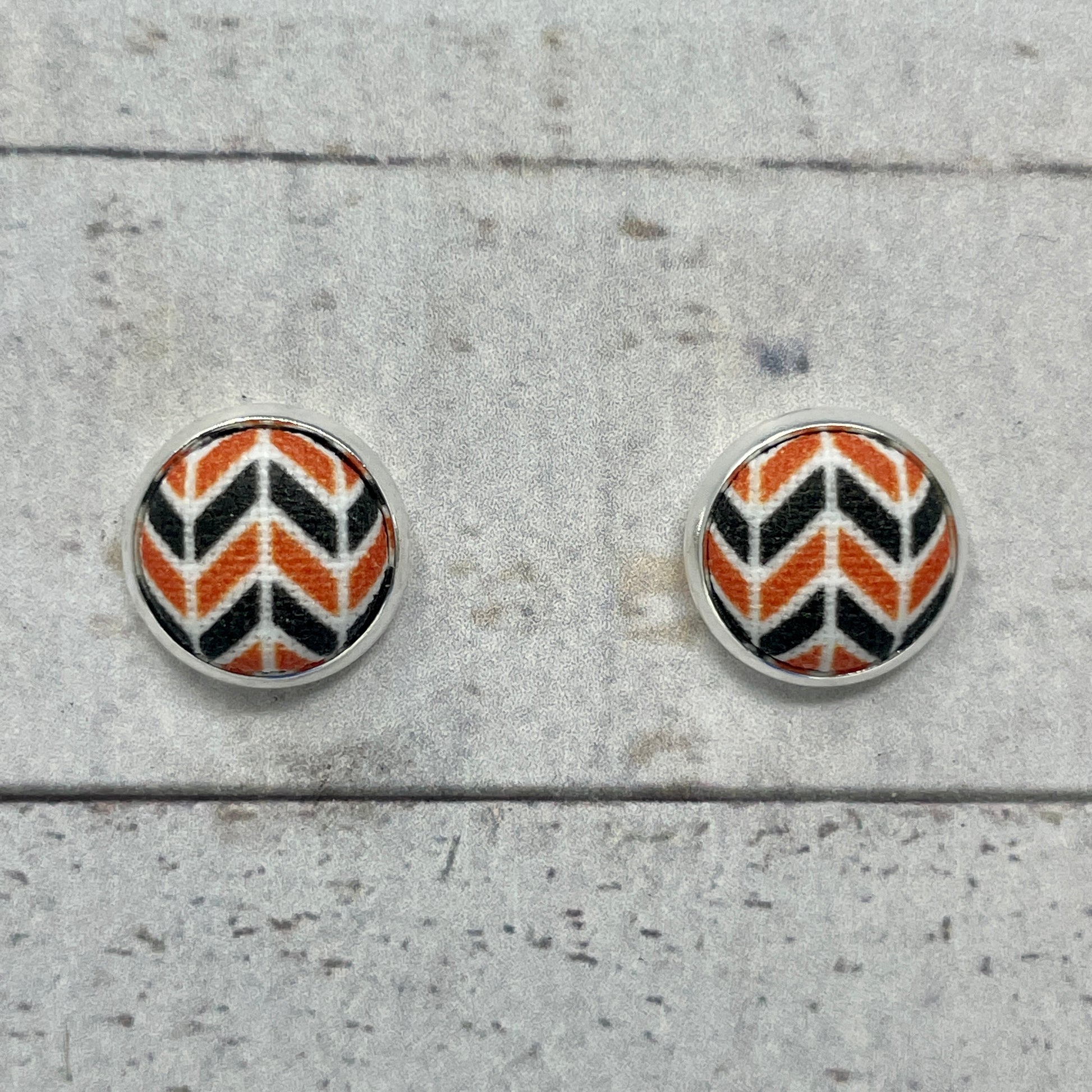 Orange, Black, & White Herringbone Fabric Stud Earrings