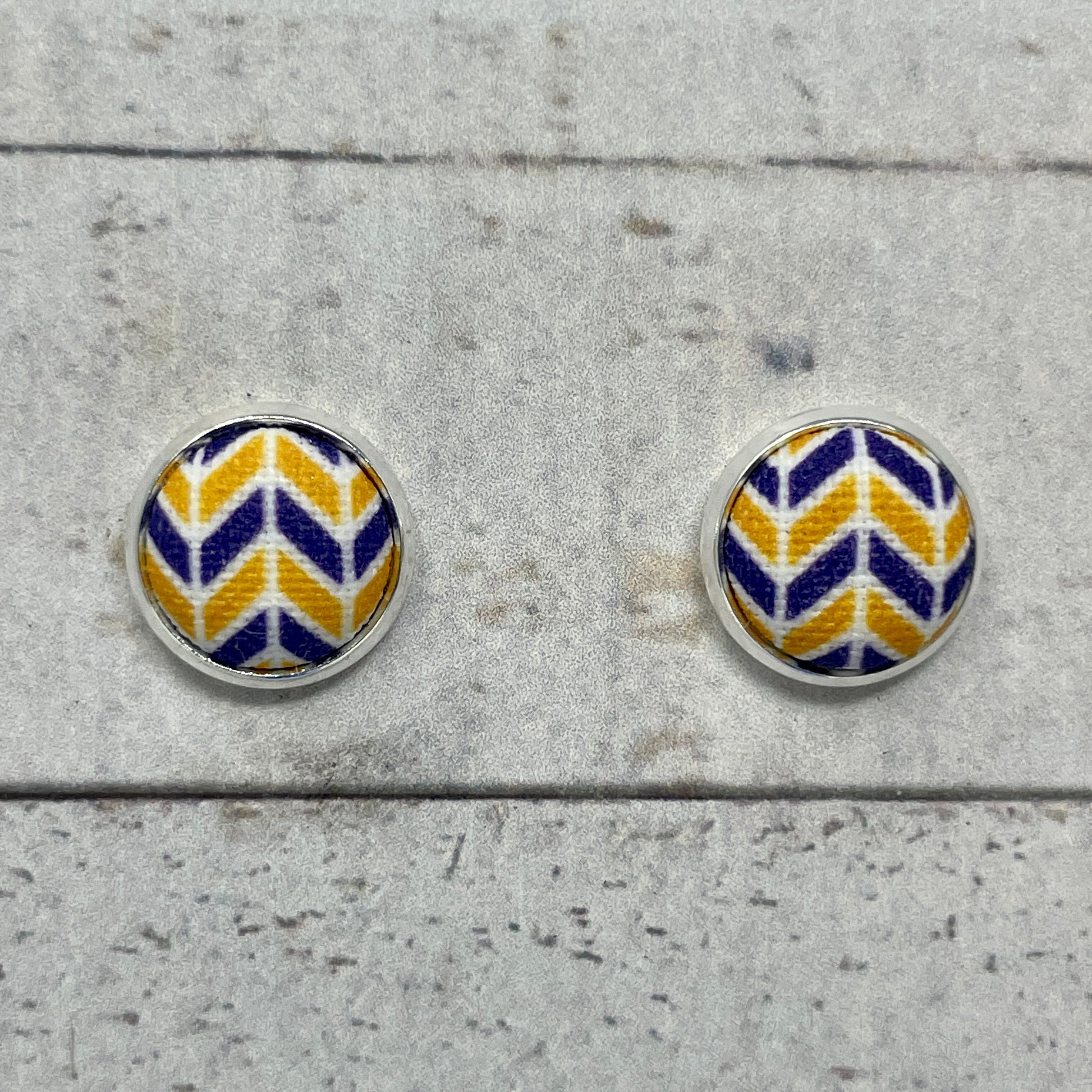 Purple, Gold, & White Herringbone Fabric Stud Earrings