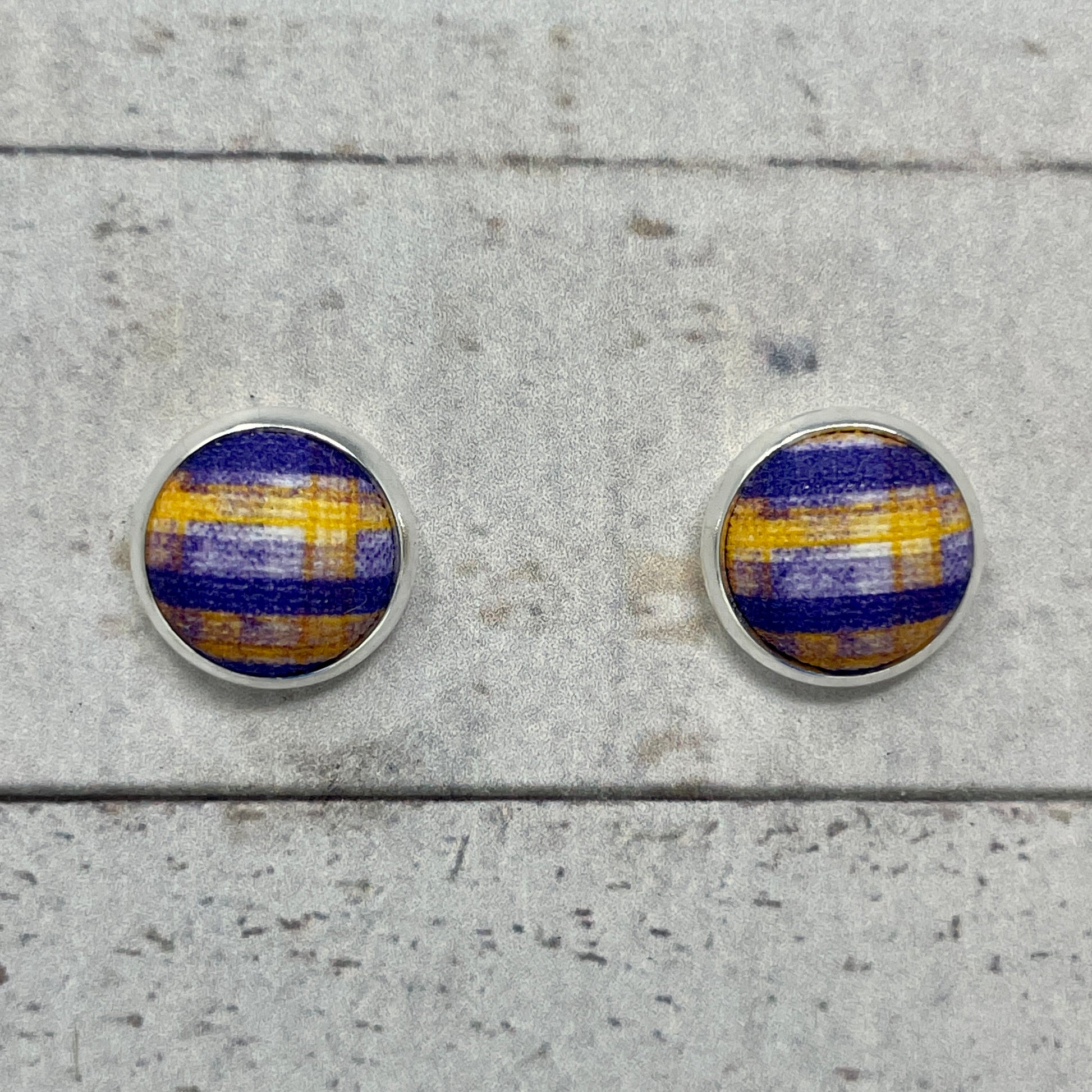 Purple, Gold, & White Plaid Fabric Stud Earrings