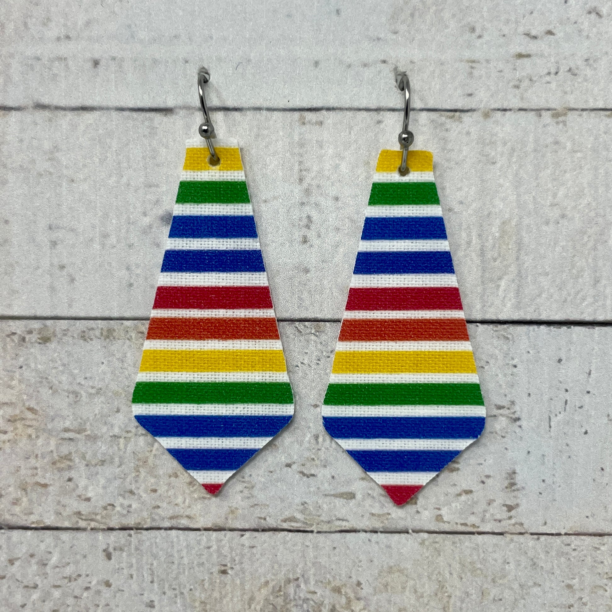 Rainbow Striped Fabric Tie Earrings