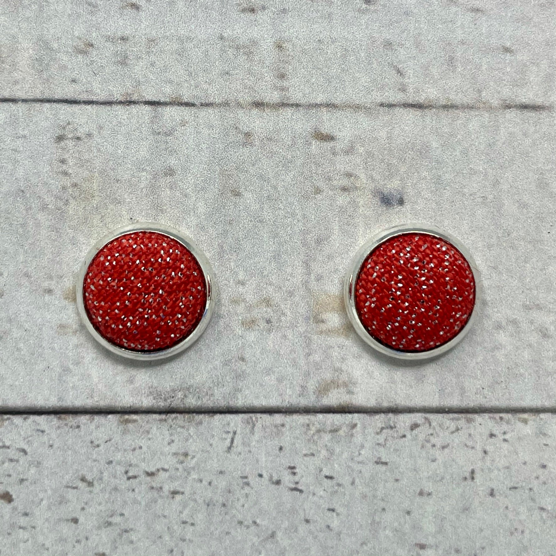 Red Shimmer Fabric Stud Earrings