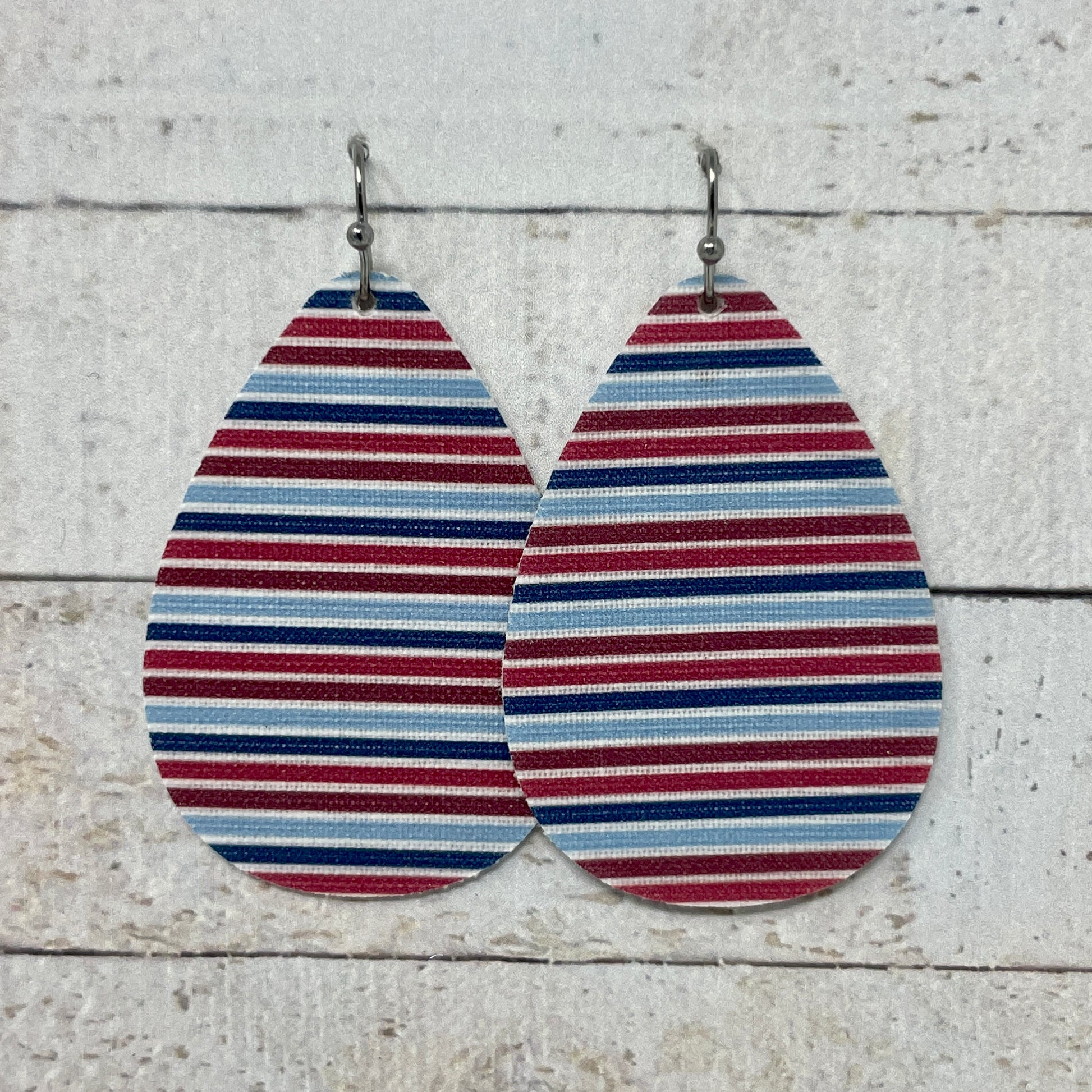 Red, White & Blue Striped Fabric Teardrop Earrings
